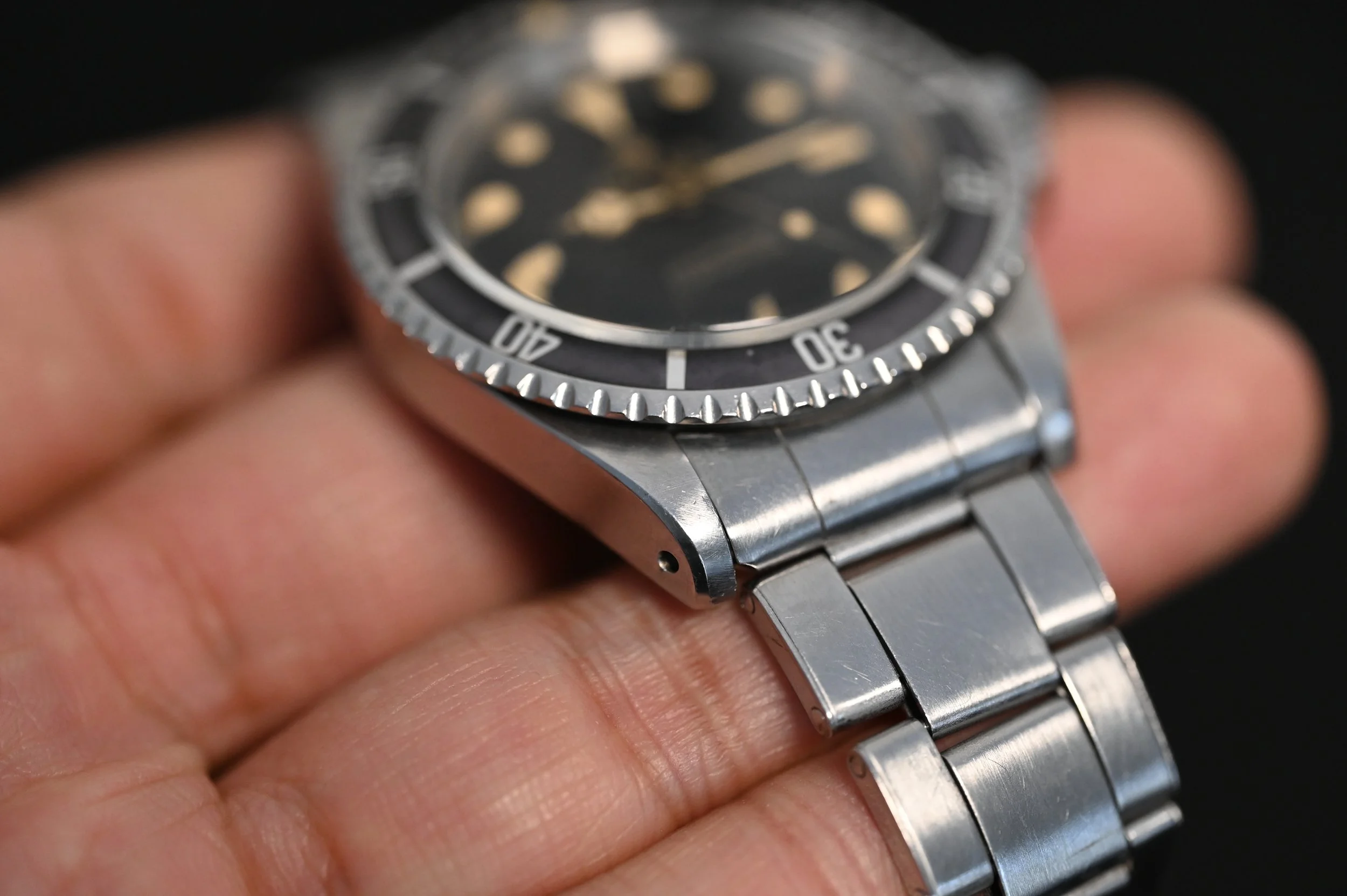 The Rolex 5513 Submariner non-chapter gilt dials from the early to mid 60’s was particularly beautiful. The simplistic 2-line depth rating and Submariner layout in gilt print simply pounces off the mirror gloss dial – in sunlight, you better have your sunglasses on. Now, some gilt Submariners during that era have gilt hands and some don’t. Of course, I personally find gilt more attractive but we all know the saying, beggars can’t be choosers.