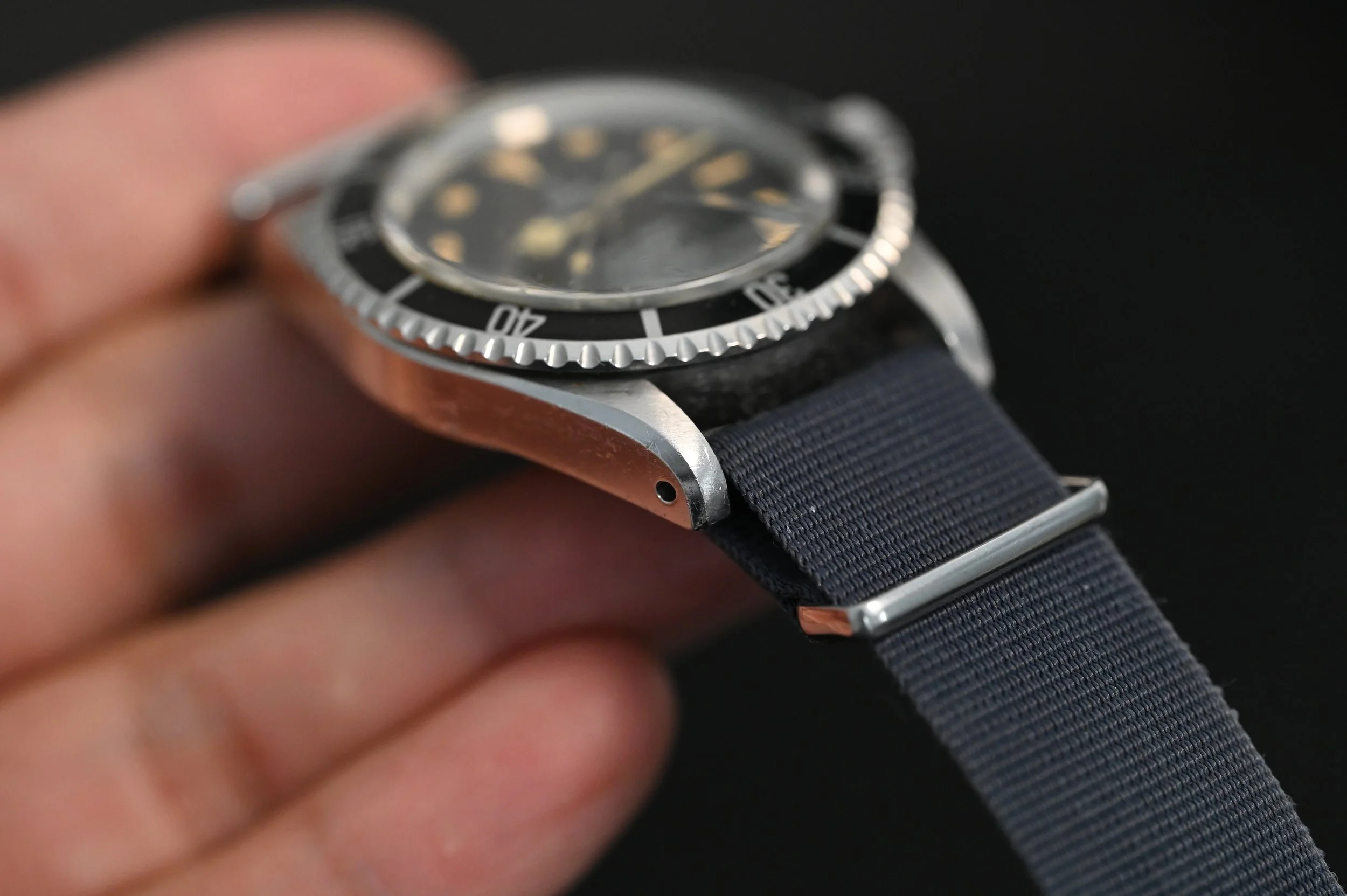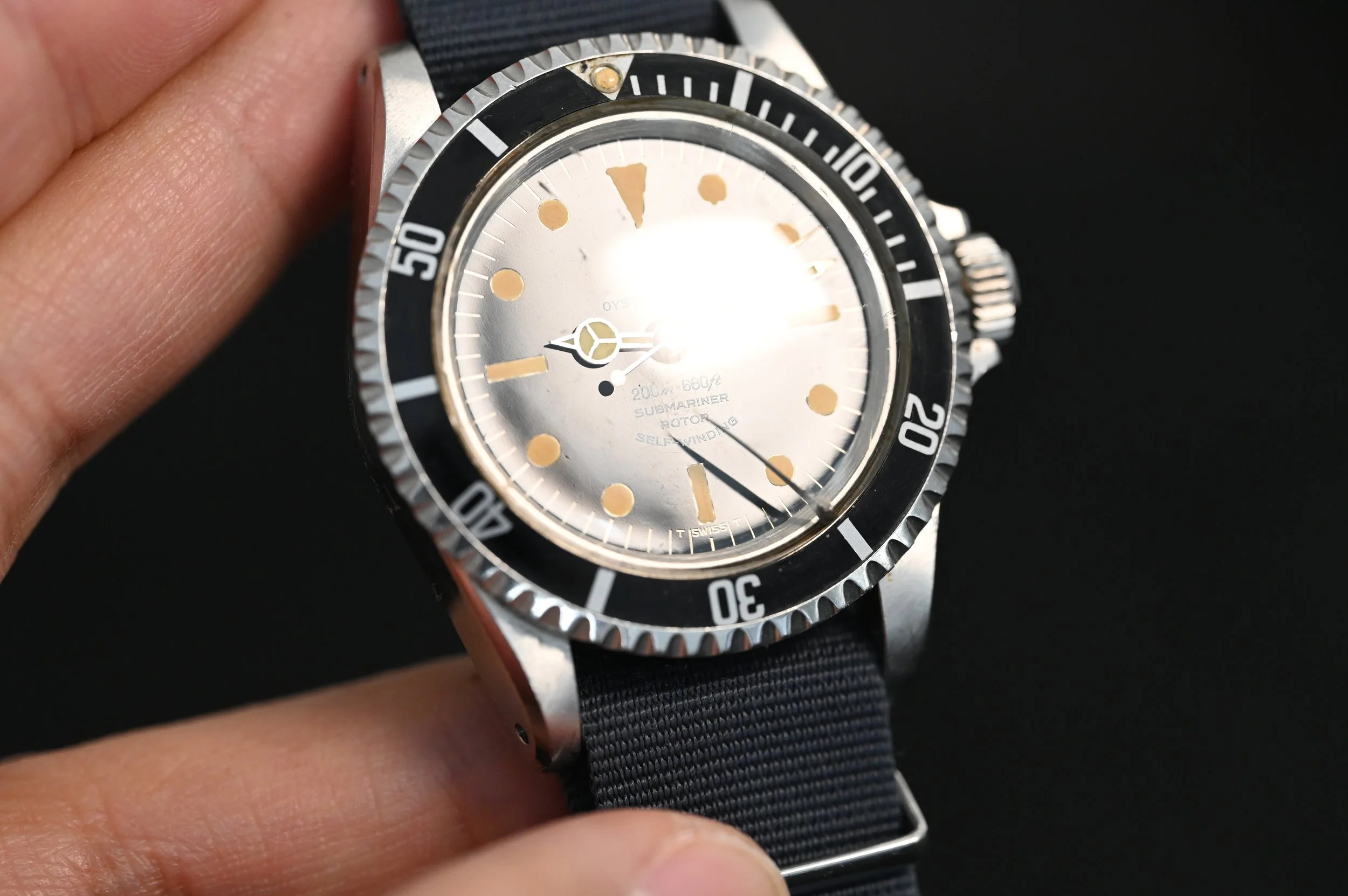 Case condition is not usually the first thing your eyes are drawn to, it’s the dial. But for the experienced, once you experience exceptional cases, you can’t unsee it. The utter condition of this case is one for the textbooks – the chamfers and case definition are extremely well defined. The dial, needless to say, is one you could stare at all day long – flawless mirror gloss, incredibly bright print, magnificent matching patina, need I say more? During service, we decided to retain the original super dome crystal rather than replace it. The crack is internal and because the integrity is not compromised, we felt it added to the charm and story of the watch with its military provenance.